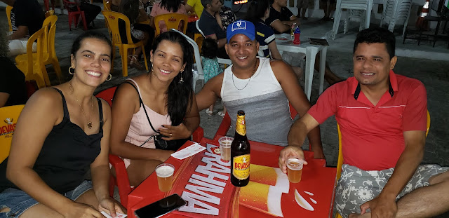 As jovens que são casadas com Sérgio e Ney Souza, curtem o som da cantora Neide Vital no Netinho Lanches, na nova Praça de Alimentação da Cidade do Ouro.