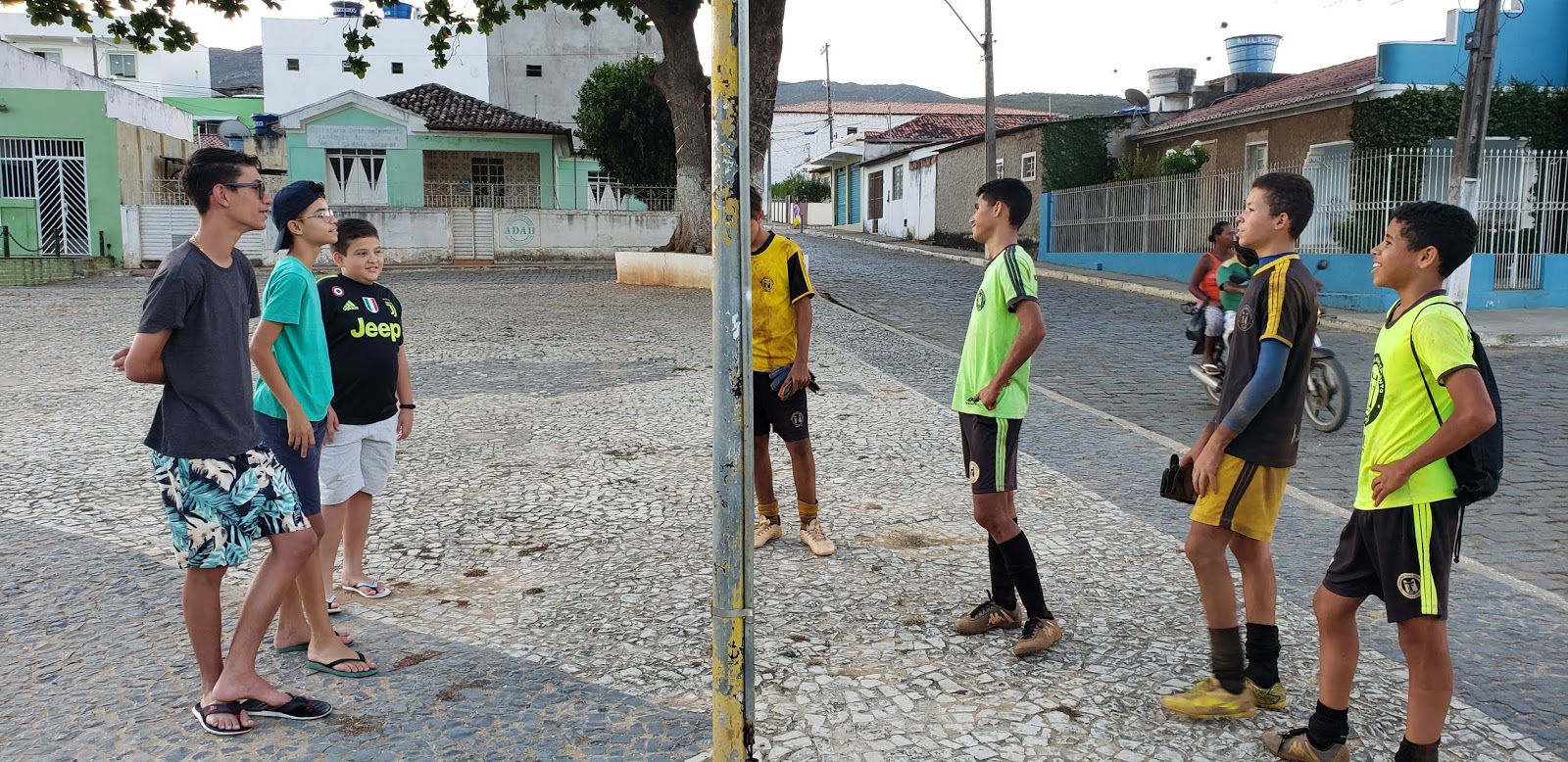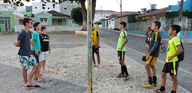 Final da tarde de quarta-feira, 11 de dezembro de 2019, e aqui na Praça 9 de Maio em Saúde, clicamos o Caio Vinicius, na companhia do Conrado Pereira, do José Ericson e do Teylon Caique.