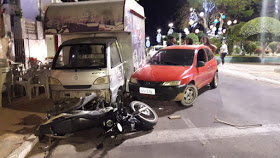 O condutor de um veículo Celta atingiu um trailer de lanches e uma moto na Praça da Missão, em Jacobina, por volta das 23h50 desta quinta-feira (12). Segundo contaram testemunhas, o homem apresentava sinais de embriaguez e fugiu correndo pela praça após o acidente. Alguns metros depois, um mototaxista deu fuga ao motorista.
