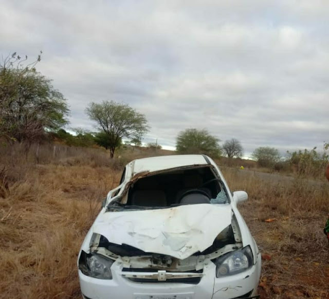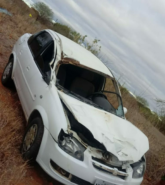 No acidente o condutor acabou saindo da pista e carro ficou bastante avariado, causando a morte do animal no acostamento.
