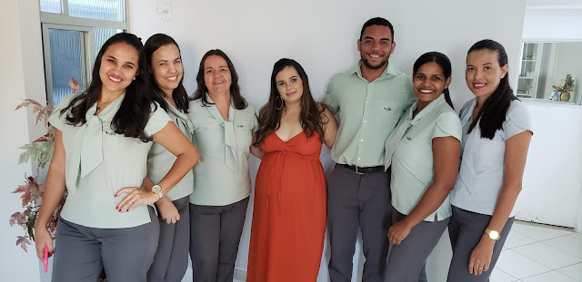 Final da tarde de quinta-feira, 19 de dezembro de 2019, e aqui no centro de Jacobina, clicamos Carla Lopes na companhia de colegas da Clínica Santa Bárbara.