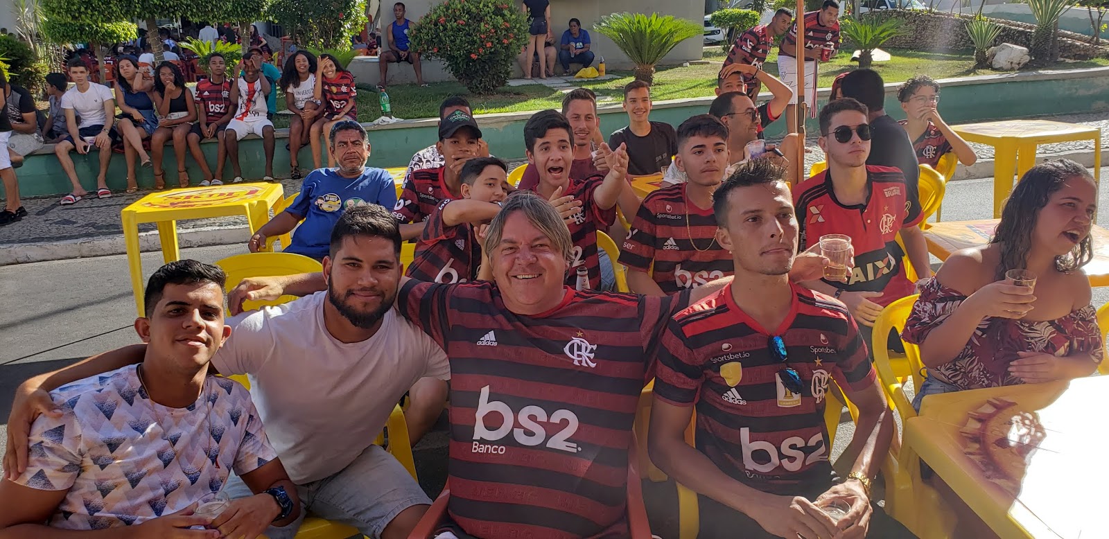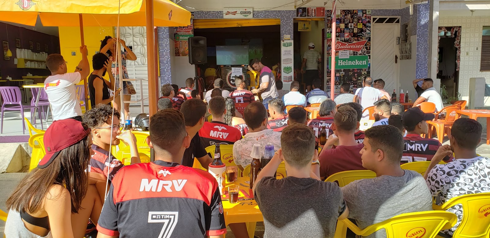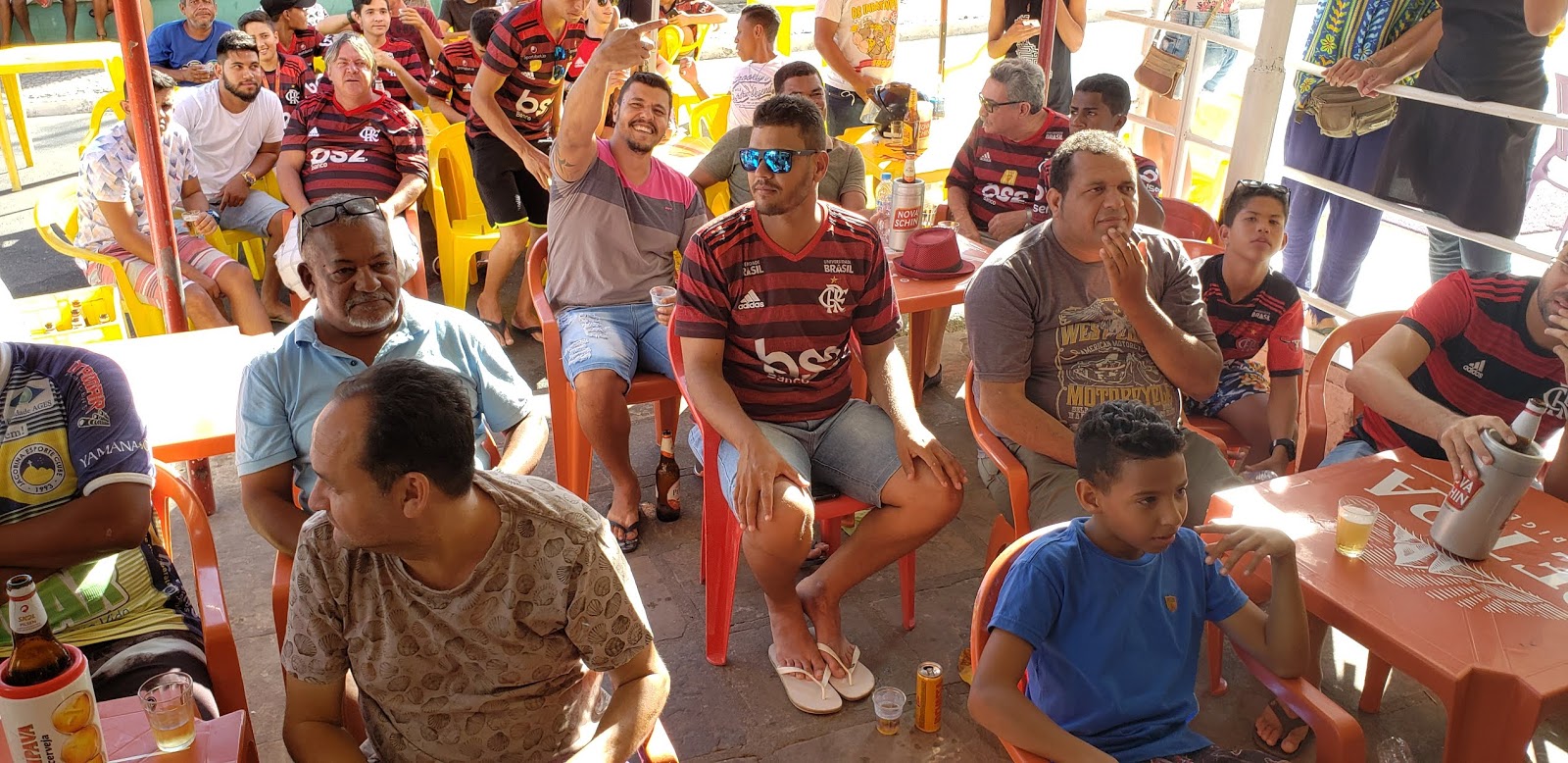 Tarde de sábado, 21 de dezembro de 2019, e aqui no Alto da Missão em Jacobina, pessoas acompanham a partida Flamengo x Liverpool.