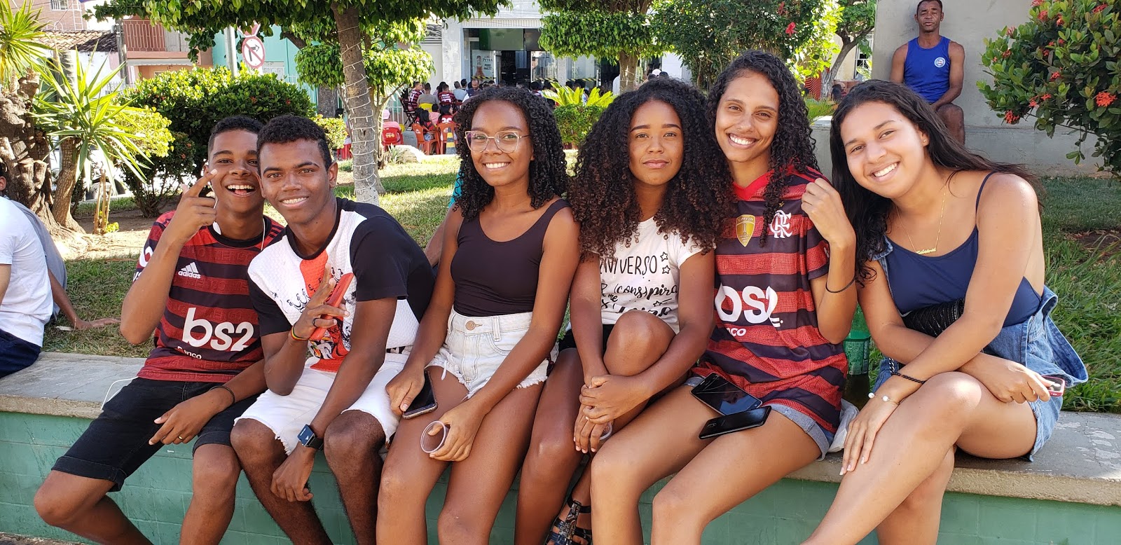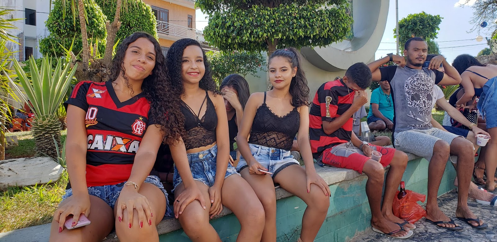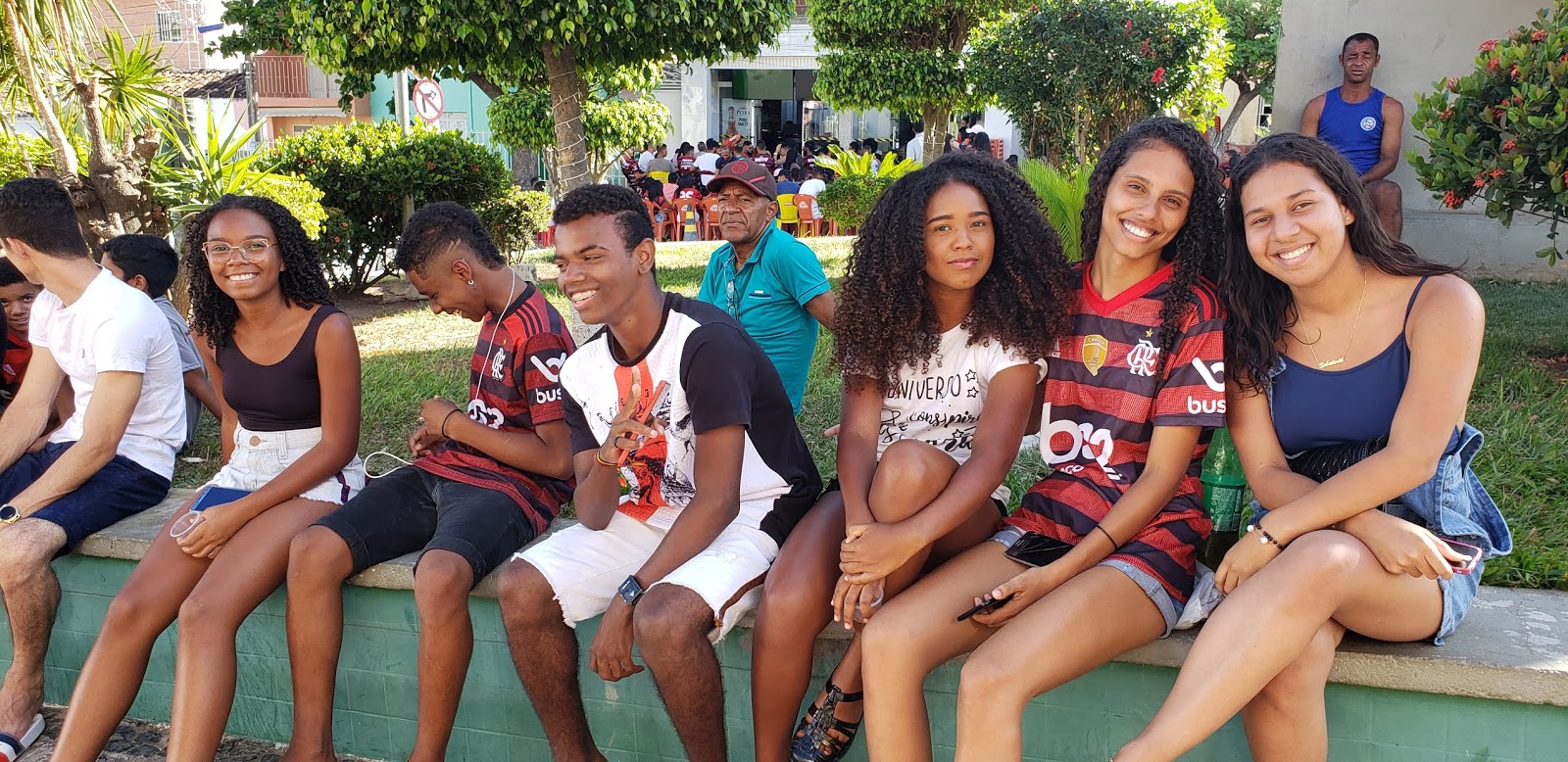 Tarde de sábado, 21 de dezembro de 2019, e aqui no Alto da Missão em Jacobina, pessoas acompanham a partida Flamengo x Liverpool.