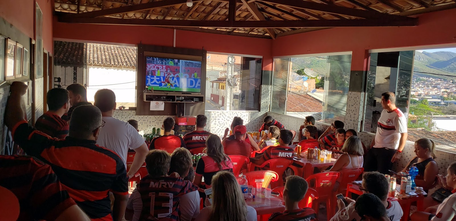 Tarde de sábado, 21 de dezembro de 2019, e aqui no Bairro da Caeira em Jacobina, Flamenguistas observam com tristeza na TV o resultado da partida Flamengo x Liverpool.