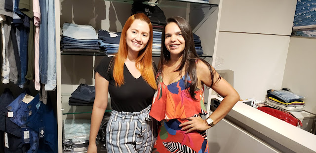 As jovens atendem as clientes da Fernanda Moda, que tem roupas masculinas e femininas.