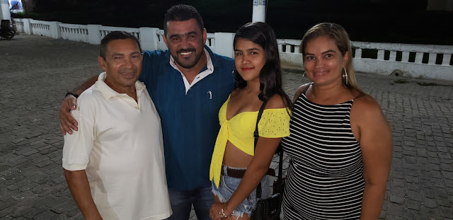 Noite de sexta-feira, 10 de janeiro de 2020, e aqui no Mercado Velho em Jacobina, clicamos o Getúlio Lino, recebendo a visita do seu filho Sérgio, da neta Sued Maria e da nora Fátima Lima.