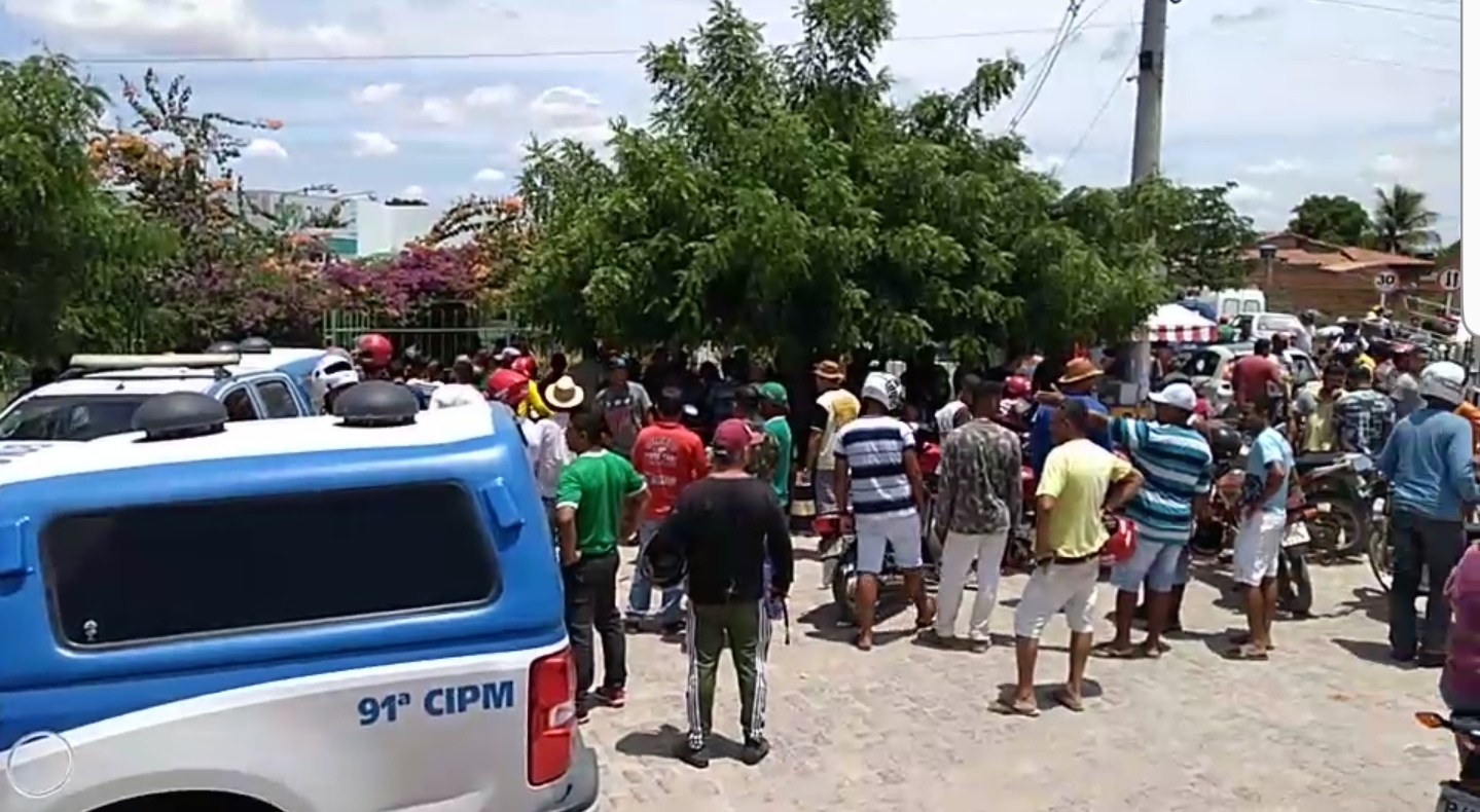 No início da tarde desta terça-feira, 21 de janeiro de 2020, centenas de pessoas estão em frente a UPA 24h no Bairro Novo Oeste de Capim Grosso, tentando linxar dois suspeitos da morte do mototaxista Ezimar Cerqueira (35).