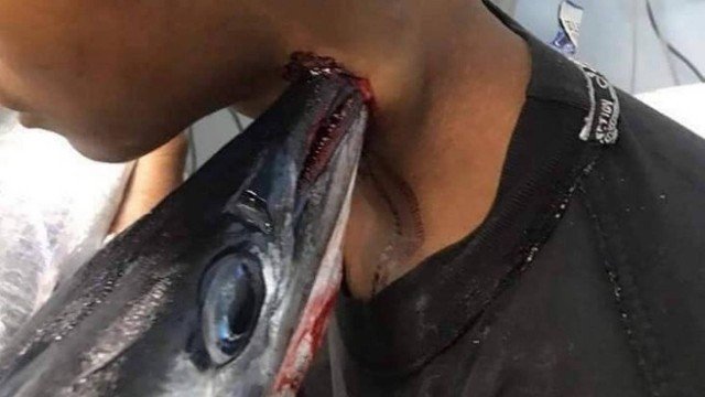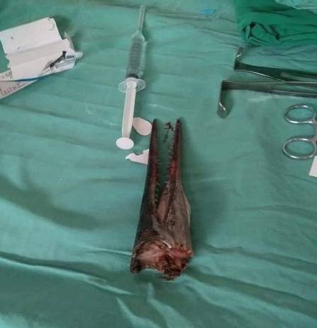 "Sorte que o peixe ficou preso. O bico bloqueou o sangramento", disse um médico envolvido na