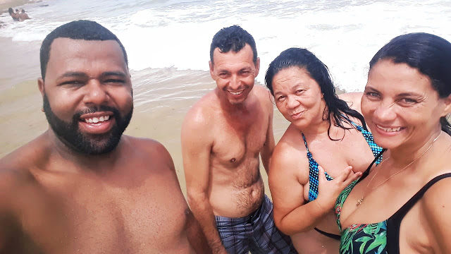 Tarde de domingo, 26 de janeiro de 2020, e na Praia de Ipitanga em Salvador, o Renan Oliveira fez um selfie na companhia de familiares.