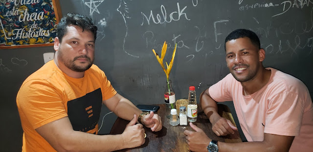 Noite de domingo, 26 de janeiro de 2020, e aqui na Praça Manoel Novaes em Caém, clicamos o Danilo visitando o Neto no Aroma da Terra.