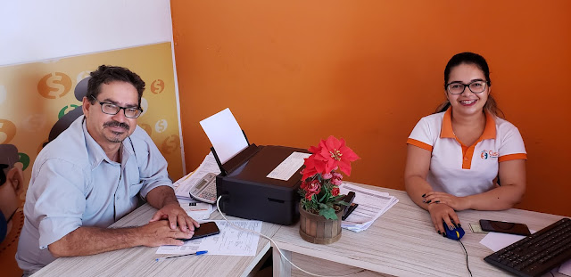 A dupla atende na Casa do Aposentado, que oferece empréstimo consignado, com lojas também nas cidades de Saúde e Ponto Novo.