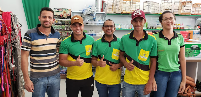 Início da tarde de terça-feira, 28 de janeiro de 2020, e aqui na Praça Edgar Pereira em Caldeirão Grande, clicamos o Márcio Santana na companhia de parte da equipe da loja A Fazendinha Mix- Agropecuária e Construção.