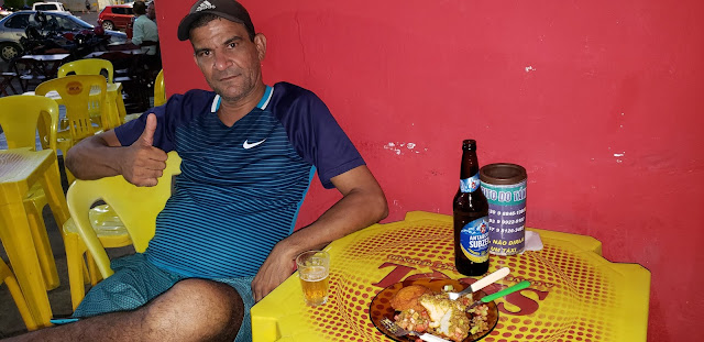 Início da noite de quarta-feira, 29 de janeiro de 2020, e aqui na Praça Castro Alves em Jacobina, clicamos o Gustavo Medeiros, o Guga Mania apreciando um acarajé com uma cervejinha.