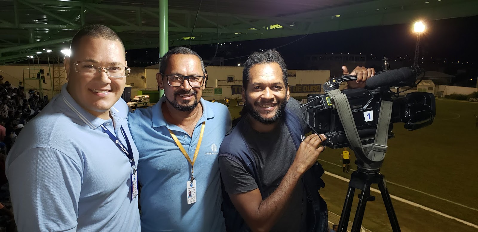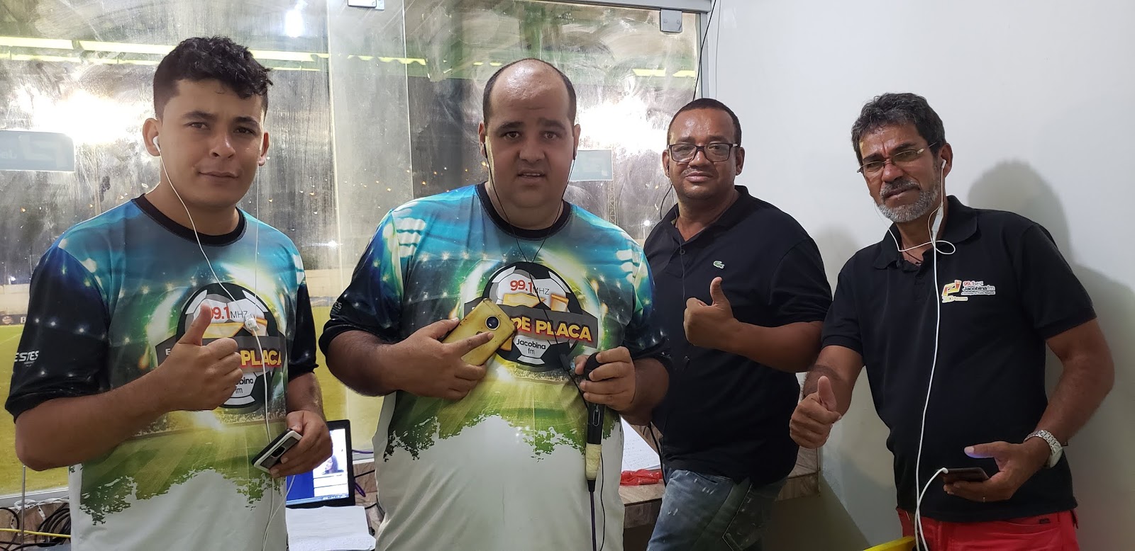 Noite de quarta-feira, 29 de janeiro de 2020, e aqui no Estádio José Rocha em Jacobina, equipes de rádio e TV fazem a cobertura da partida Jacobina x Fluminense de Feira.