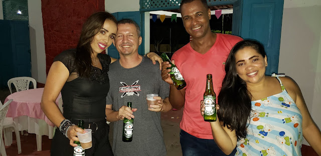 O quarteto toma um Heineken, no final da festa de aniversário da pequena Esther Lima de 2 anos, fila de Ney Iasmim.