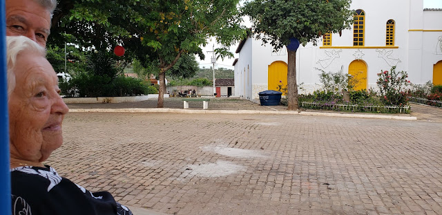 Final da tarde de domingo, 02 de fevereiro de 2020, e aqui na Praça da Matriz em Itaitu de Jacobina, a Dete na companhia do seu filho Robério Menezes.