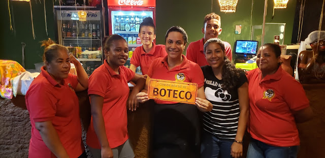 Início da noite de domingo, 09 de fevereiro de 2020, e na Praça da Matriz em Itaitu de Jacobina, clicamos a Juliana com parte da equipe do Boteco da Villa.