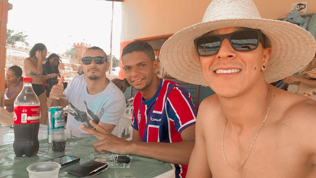 Tarde de domingo, 16 de fevereiro de 2020, e no Balneário Bananal em Roçado de Caatinga do Moura de Jacobina, o Tiago Lopes fez um selfie na companhia de amigos.