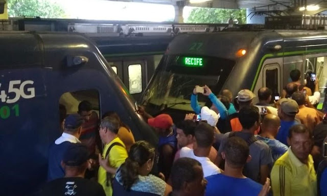 Uma colisão entre dois trens do Metrô do Recife (Metrorec) ocorreu no início da manhã desta terça-feira (18) na capital pernambucana. O acidente foi por volta das 5h40 na Estação Ipiranga, no bairro de Afogados, na Zona Oeste do Recife. A batida deixou pelo menos 29 feridos segundo o Samu, que foi ao local com dez ambulâncias para fazer o atendimento. Por causa da batida, a Linha Centro do Metrô do Recife está sem funcionar.