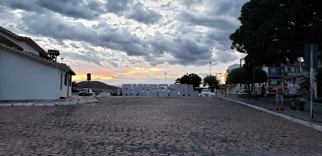 Início da noite de terça-feira, 18 de fevereiro de 2020, e aqui observamos a vida na Praça da Missão em Jacobina.