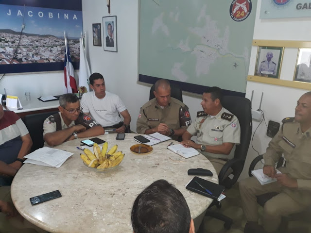 Na manhã desta terça-feira, 18 de fevereiro, o Major PM Flailton Oliveira, Comandante da 24ª CIPM em Jacobina, realizou uma reunião com seu corpo de oficiais no gabinete do Comando, onde foram passadas instruções e diretrizes durante o período do Carnaval em Jacobina e demais Cidades, Distritos e Povoados de responsabilidade da Unidade PM.