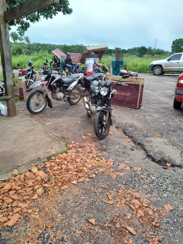 Os populares aproveitaram que parte da carga ficou espalhada na estrada para furtarem os aparelhos de TV’s em motocicletas, em carros e muitas pessoas colocaram os monitores na cabeça se seguiram sem ser impedidos.