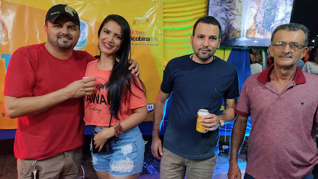 Noite de sábado, 22 de fevereiro de 2020, e aqui na Praça da Matriz em Itaitu de Jacobina, clicamos o Vaquerinho do Rancho São Jorge na companhia de sua esposa Soraia e do amigo Nilson com o seu pai Zé de China.