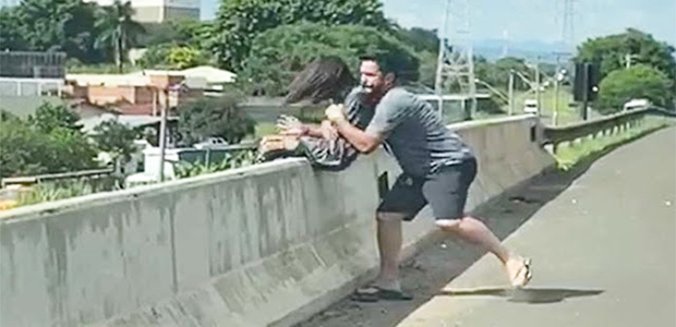 Um vídeo gravado pelo passageiro do motorista mostra o momento em que ele desce do carro e vai até a adolescente que não percebe sua presença, motivo pelo qual, ele conseguiu agarrar a menina pelas costas e tirá-la do viaduto.