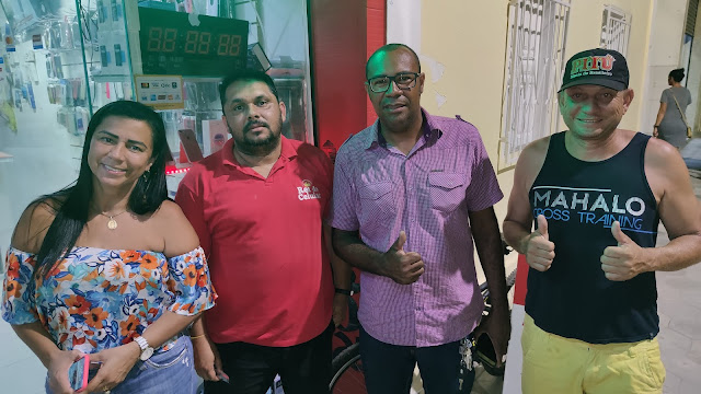 Início da noite de quinta-feira, 19 de março de 2020, e aqui no novo Calçadão de Jacobina, clicamos o Edmilson Gomes,o Rei do Celular,  cumprimentando seus clientes.