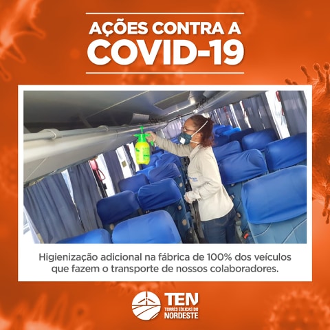 Higienização adicional na fábrica de 100% dos veículos que fazem o transporte de nossos colaboradores