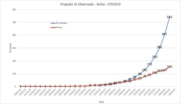 No último domingo (29), a Sesab apontou 156 casos da doença no estado. O projetado para a data, de acordo com a pasta, era de 542 casos. A secretaria segue atualizando os números diariamente. Veja o gráfico:
