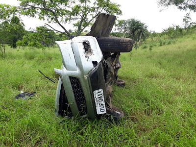 O veículo saiu da pista, colidiu contra uma cerca de arame e desceu a ribanceira depois que o motorista perdeu o controle da direção na curva.