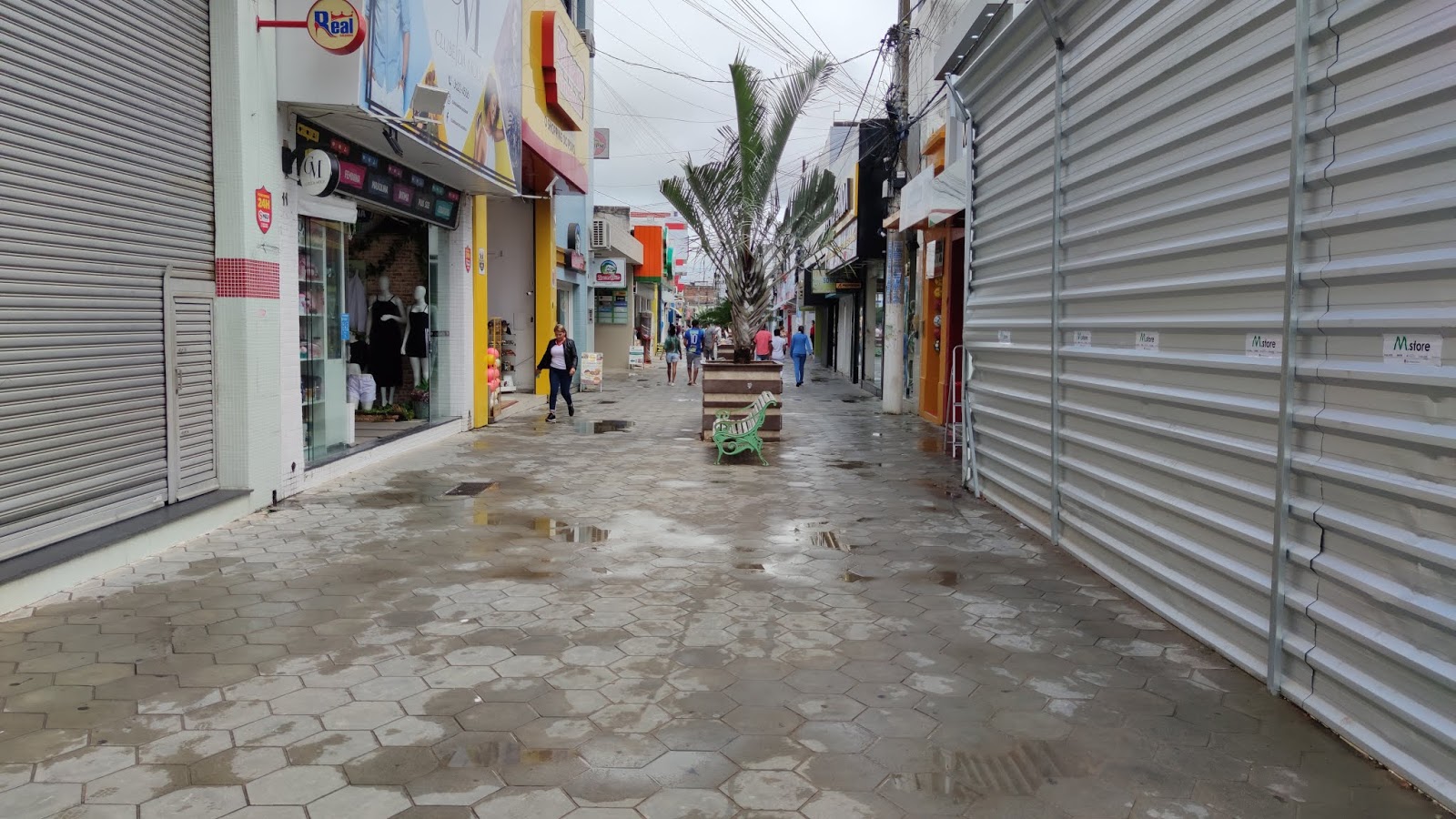 O comércio segue aberto, cumprindo o decreto das 8 às 14h, porém, a movimentação é baixa, principalmente nas lojas do calçadão.
