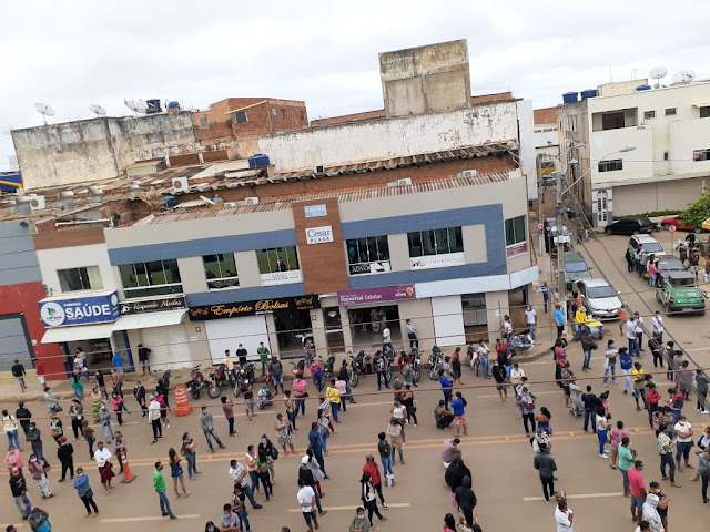 Segundo um internauta, a foto foi feita em Irecê e as pessoas compartilham na esperança que agências e órgãos públicos de outras cidades busquem seguir a mesma idéia, evitando aglomerações em prevenção ao coronavírus.
