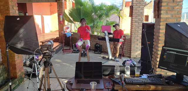 Tarde de domingo, 03 de maio de 2020, e aqui no Chalé Monte Tabor em Jacobina, pessoas trabalham na estrutura para a live de Vadão do Povão.