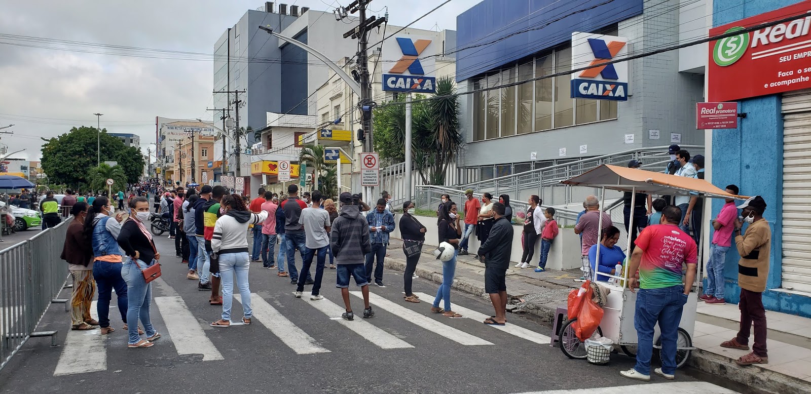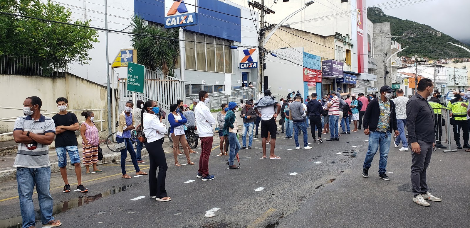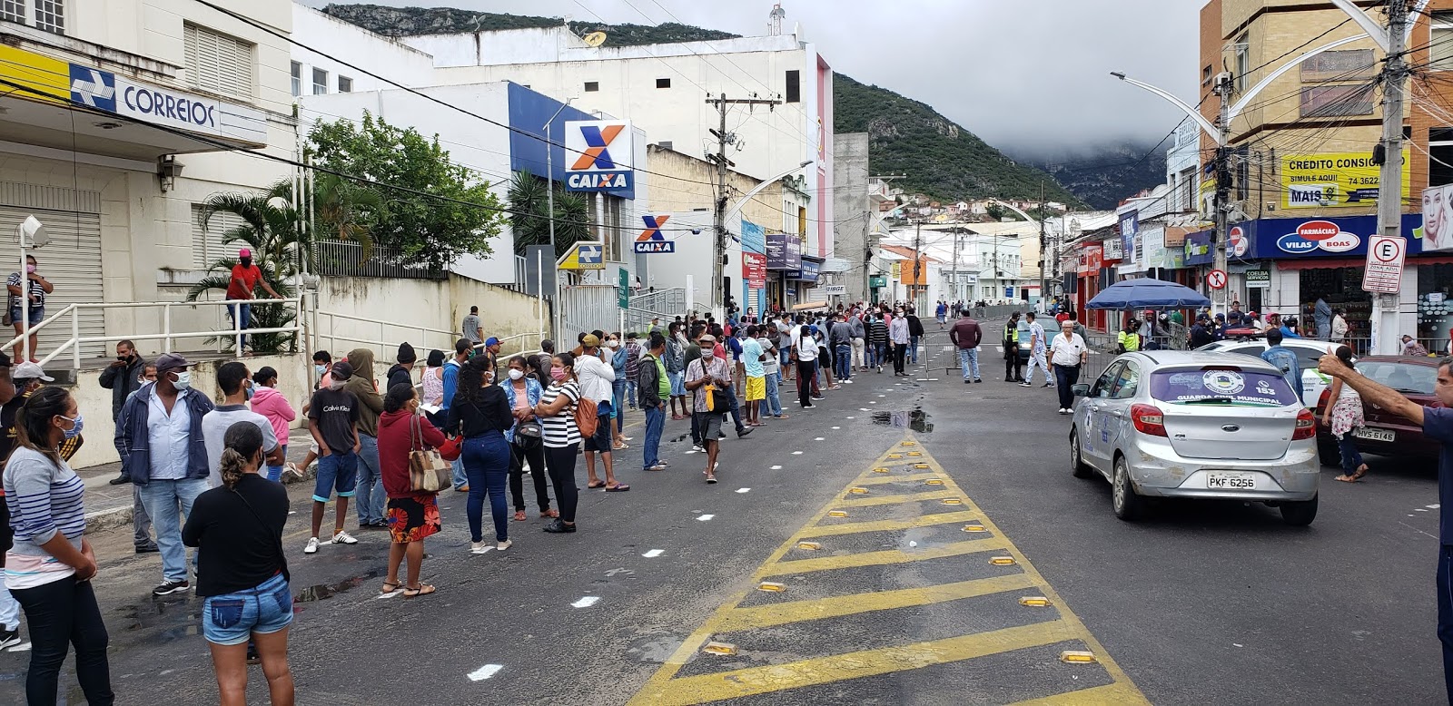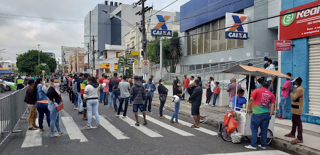 Contam com apoio do SMTT, Guarda Municipal e Polícia Militar, as pessoas que vem também de cidades vizinhas, buscam sacar o valor de R$ 600,00 liberado pelo Governo Federal para os trabalhadores no período da pandemia do Coronavírus.