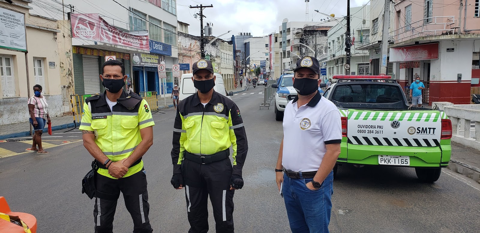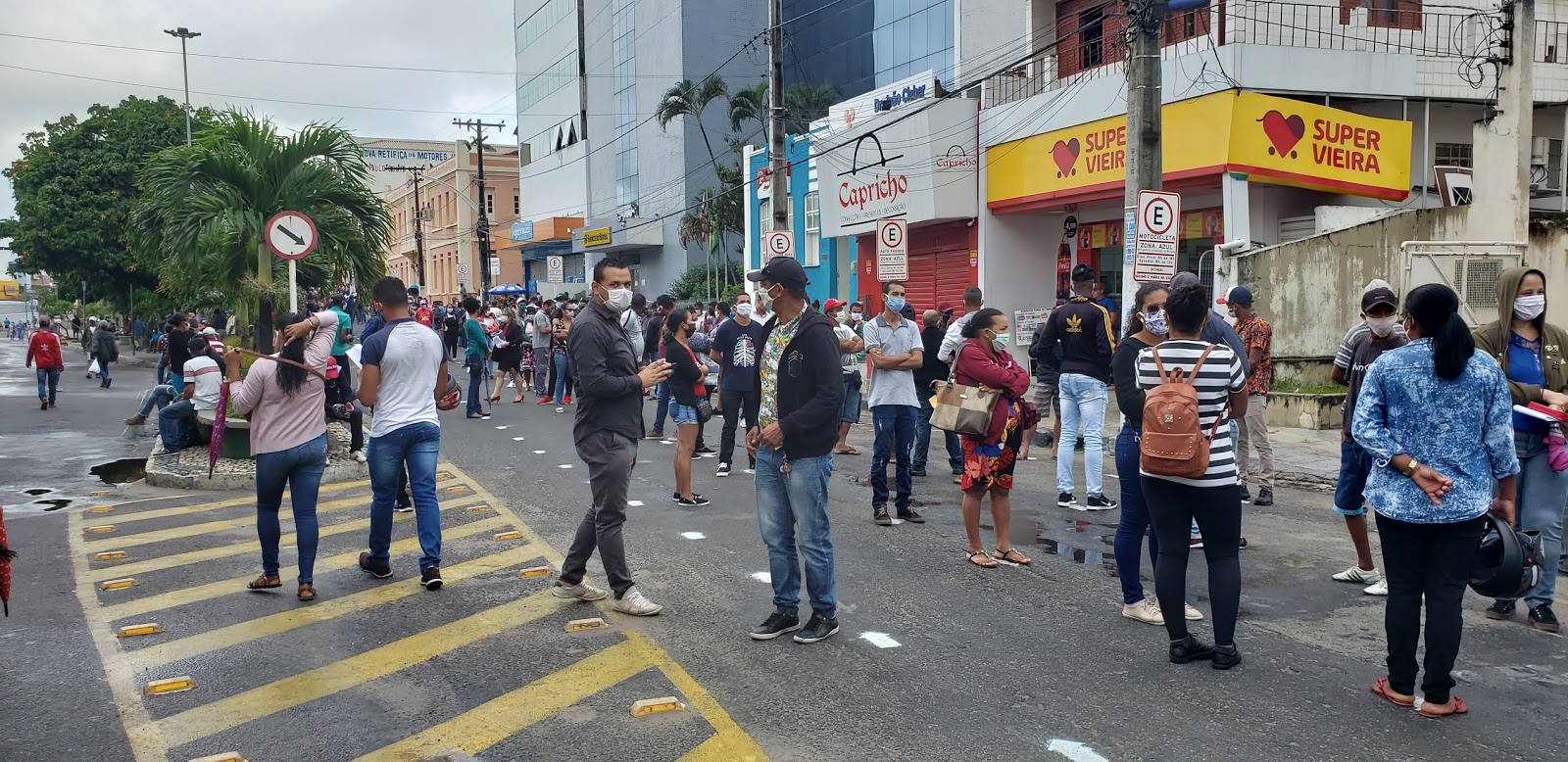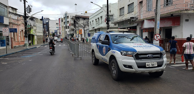 As ruas Senador Pedro Lago, Caixeiro Viajante e Praça Rio Branco foram fechadas pelas Prefeitura Municipal. Foram colocadas grades de isolamento e feitas marcações no piso.