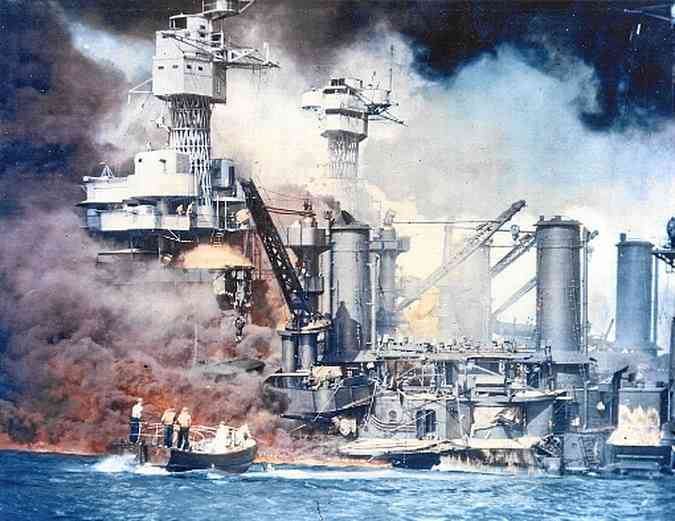 no Havaí, forçou os Estados Unidos a entrarem na Segunda Guerra Mundial, no dia seguinte. Durante o bombardeio com 353 aviões japoneses, os EUA perderam 8 navios de guerra, 8 cruzadores, 30 destróieres, 4 submarinos, 47 outros navios e 390 aeronaves.