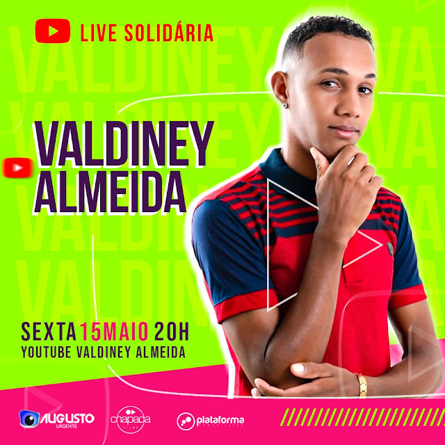 A partir das 20h desta sexta-feira, 15 de maio de 2020, o cantor Valdiney Almeida estará fazendo a sua live solidária, com transmissão pelo YouTube e Facebook.
