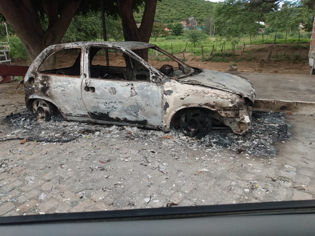 Carro incendiado no Bairro Nazaré em Jacobina