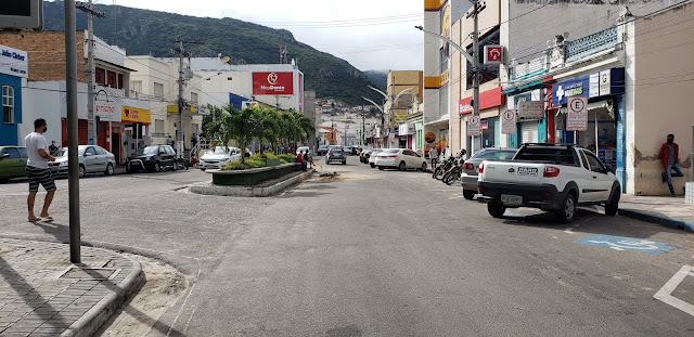 Na manhã desta segunda-feira, 18 de maio de 2020, poucas pessoas circulam no centro comercial de Jacobina, devido ao decreto que fechou o comércio e o aumento de casos positivos de Covid-19.