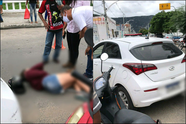 Segundo informações, uma moto colidiu com um carro, deixando uma mulher ferida ao chão e o trânsito lento na avenida.