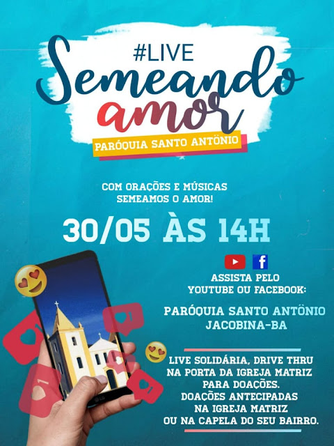 Um momento de música, louvor e oração através de uma live no dia 30 de maio às 14h 😄