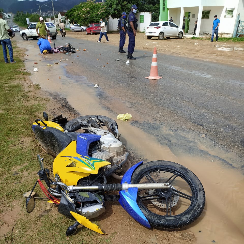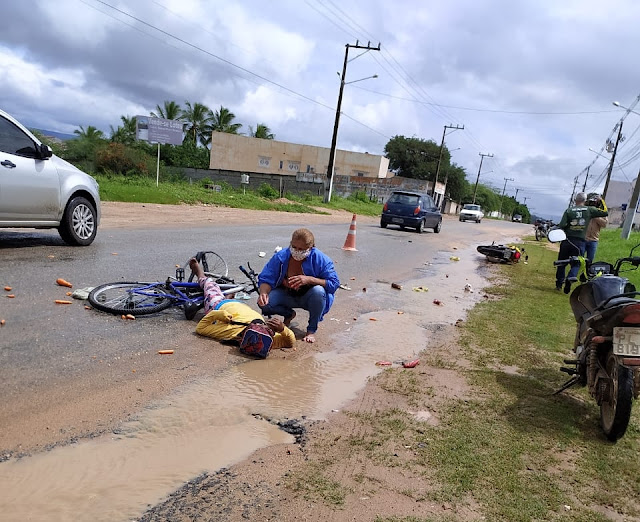 No final da manhã desta sexta-feira, 22 de maio de 2020, uma moto colidiu com um ciclista na Avenida Nossa Senhora da Conceição, próximo ao Colégio Modelo em Jacobina.