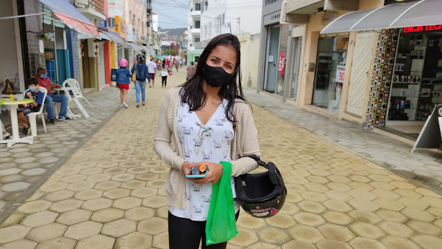 Na manhã desta segunda-feira, 1° de junho de 2020, encontramos a jovem Taís Tinel realizando compras no Calçadão de Jacobina.