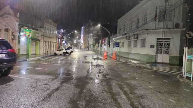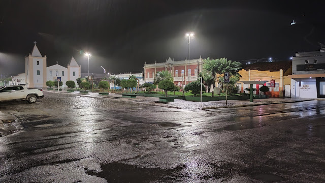 Final da noite de quarta-feira. 03 de junho de 2020, e aqui observamos a chuva na Praça Castro Alves em Jacobina.