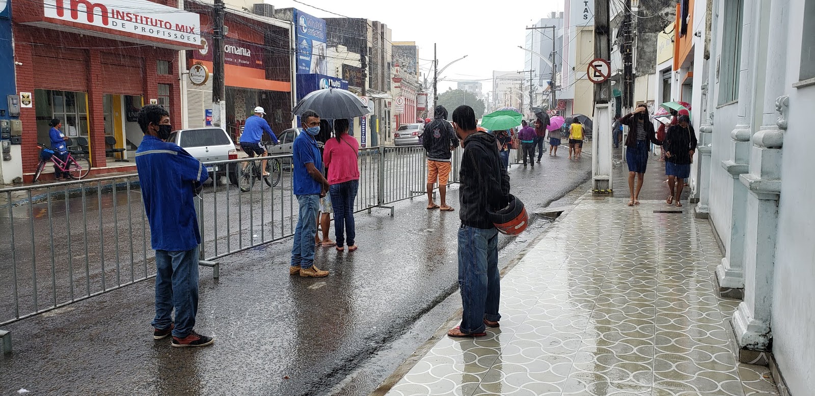 Fila e chuva para sacar o auxílio emergencial em Jacobina