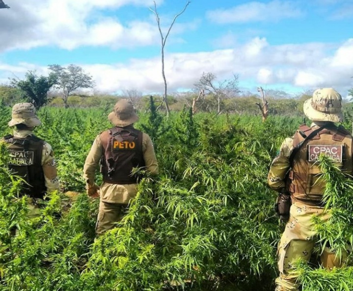 Uma roça com 76 mil pés de maconha foi erradicada na quinta-feira (4), no povoado de Caixão, zona rural do município de Campo Formoso. A roça avaliada em R$ 6 milhões renderia 12 toneladas de maconha.
