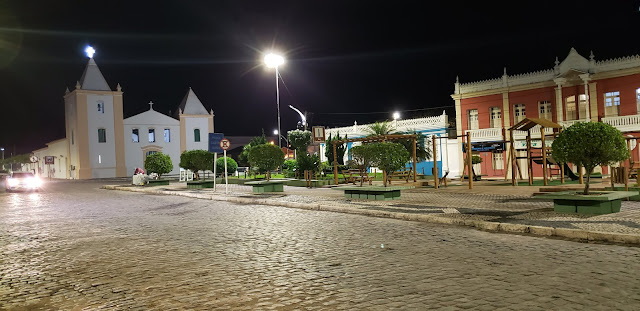 Noite de sábado, 06 de junho de 2020, e aqui na Praça Castro Alves em Jacobina, clicamos a Vânia na companhia da Chica Pereira.