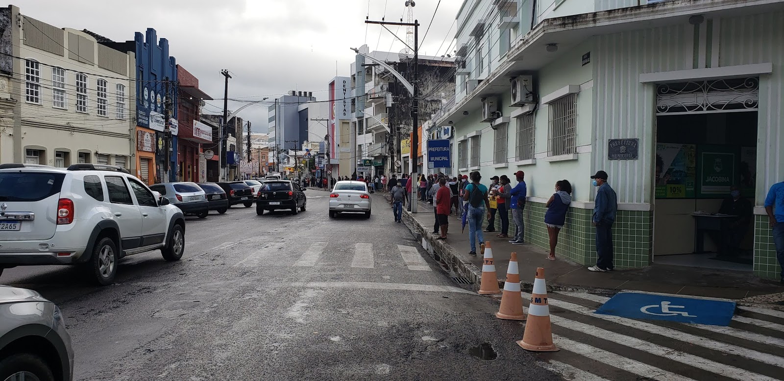 Na manhã desta segunda-feira, 08 de junho de 2020, centenas de pessoas seguem em uma fila na Rua Senador Pedro Lago em Jacobina, para atendimento na Caixa Econômica Federal.